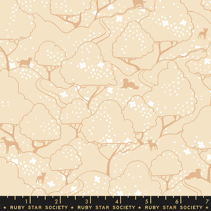 Dog Park by Sarah Watts for Ruby Star Society captures the feeling of a perfect day out with your favorite furry friends. Inspired by outdoor walks and playful exploring, the collection features dogs, flowers, forests and fields, plus art deco-style wrought iron fence motifs — like you’d see on a charming neighborhood stroll. The palette leans soft and friendly, with warm neutrals and gentle pops of color for a modern, cozy look.